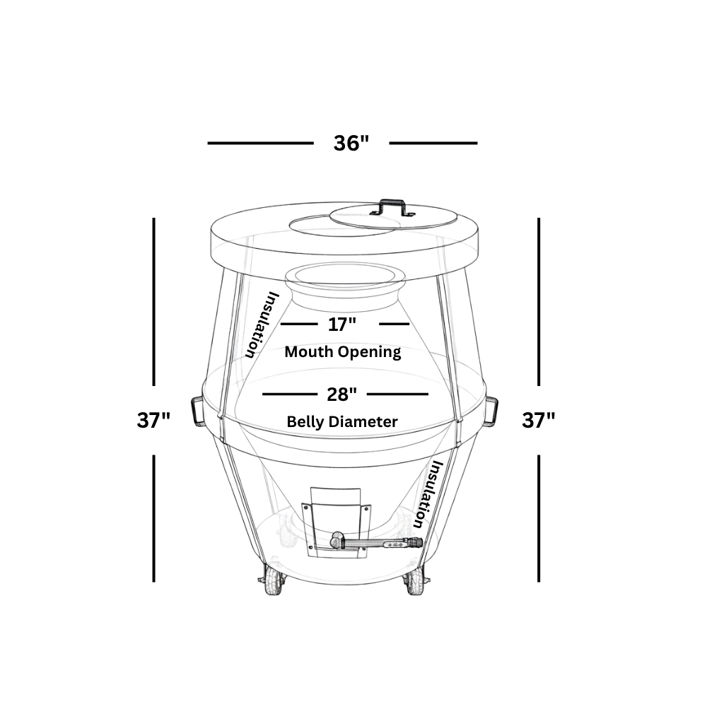 - Dimensions & Capacity: Standing tall at 36” x 36” x 37”, this Afghan Clay Tandoor has a spacious 17” mouth opening. Weighing 650 lbs (800 lbs when packaged), it’s a serious piece of kitchen equipment!