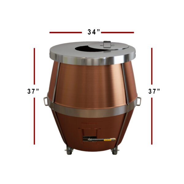 The A06 36″ x 36″ x 37″ Afghan Clay Tandoor – 17″ Mouth 28″ Belly – CSA Certified – Natural Gas or Propane – 100,000 BTU—your perfect partner for a sizzling, authentic tandoori experience!. Whether you’re using natural gas or propane, this 100,000 BTU powerhouse is ready to deliver consistent, high-performance cooking. With its Indian clay interior and double-layer copper casing, you’re not just getting a tandoor; you’re getting a flavor-enhancing, heat-retaining wonder built for professional chefs and busy restaurants.