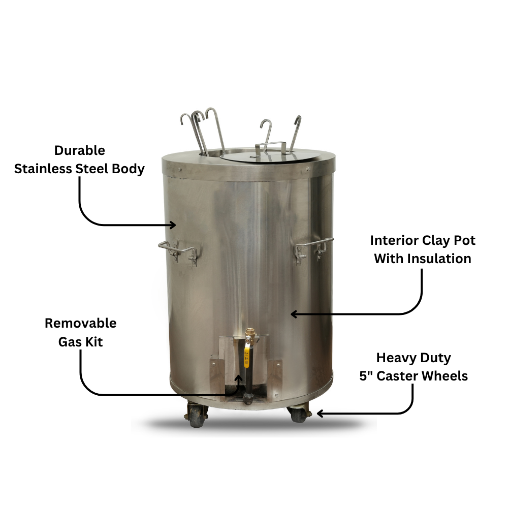 - Heating Method: Powered by natural gas or propane, the CS01 Round – Catering Clay Tandoor provides flexibility for various catering setups.